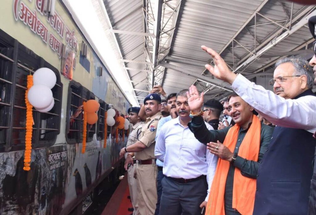 छत्तीसगढ़ पर्यटन बोर्ड के अध्यक्ष नीलू शर्मा ने कहा कि मुख्यमंत्री विष्णु देव साय श्रवण कुमार की तरह श्रद्धालुओं को धार्मिक स्थलों का दर्शन करा रहे हैं। पहली बार राजनांदगांव से अयोध्या धाम के लिए ट्रेन रवाना हुई है।