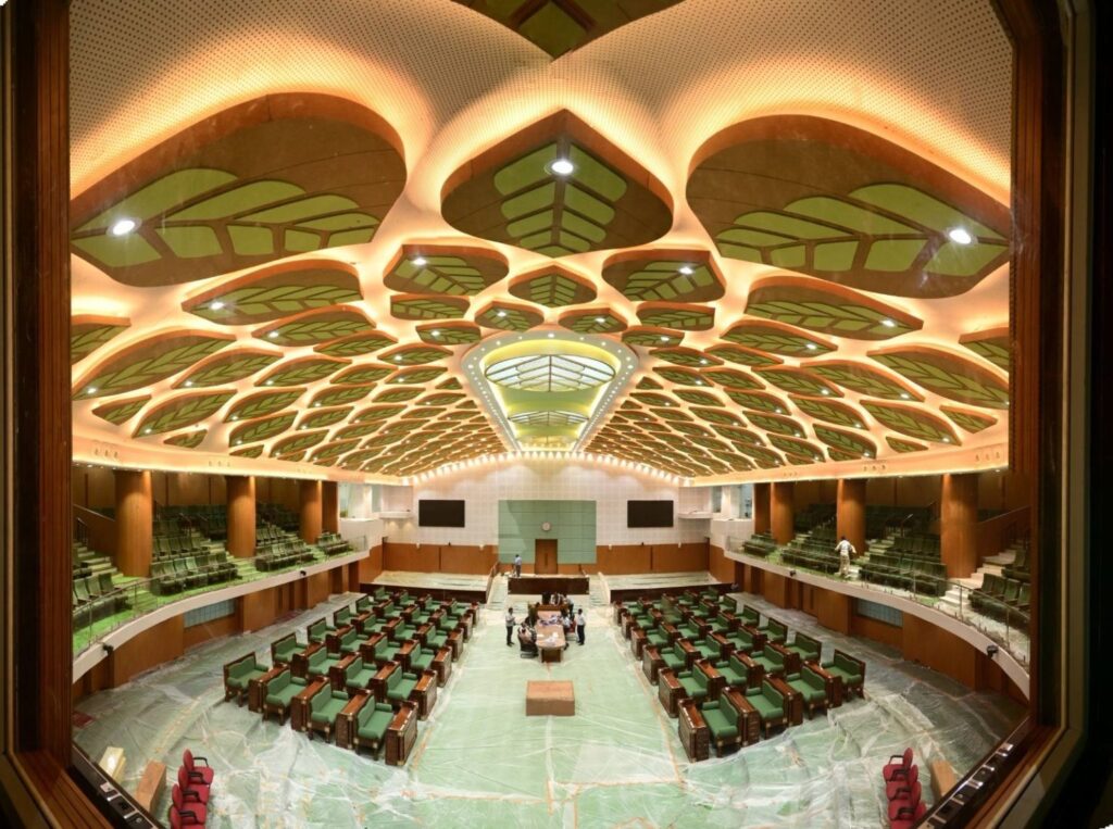 नया विधानसभा भवन तीन मुख्य ब्लॉकों में विभाजित है —